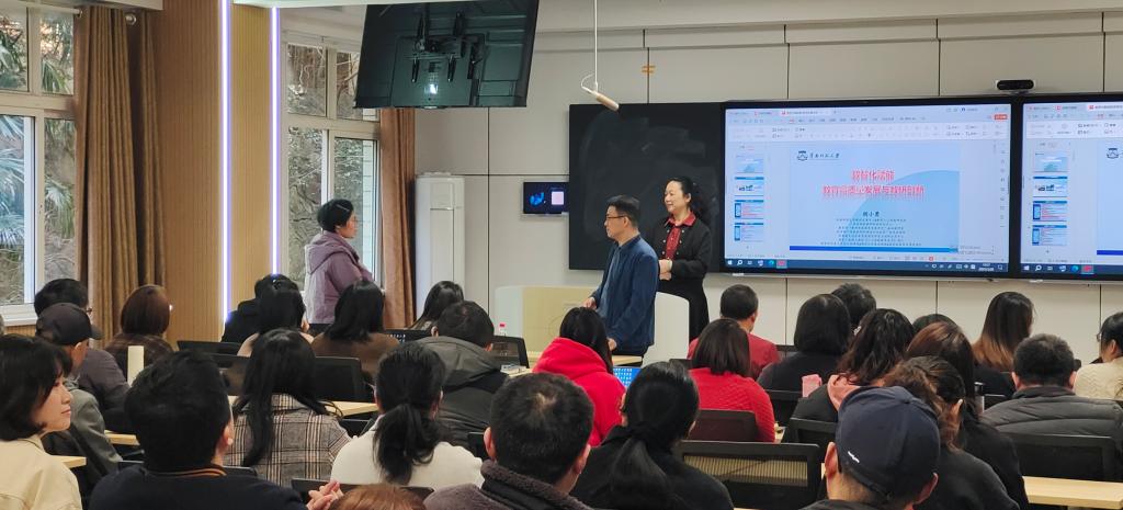 为推动我校本科教育教学综合改革和新型基层教学组织建设,创新教学活动组织和管理模式,打造教师教学发展共同体和质量文化,提升人才培养质量,3月20日,学校特邀华南师范大学教师发展中心主任、教育人工智能研究院常务副院长、教育部高校教育技术专业教指分委秘书长胡小勇教授作了题为《数智化赋能教育高质量发展与教研创新》辅导报告,学校首批虚拟教研室负责人及团队成员、各二级学院教师代表共计100余人参加了培训活动。
