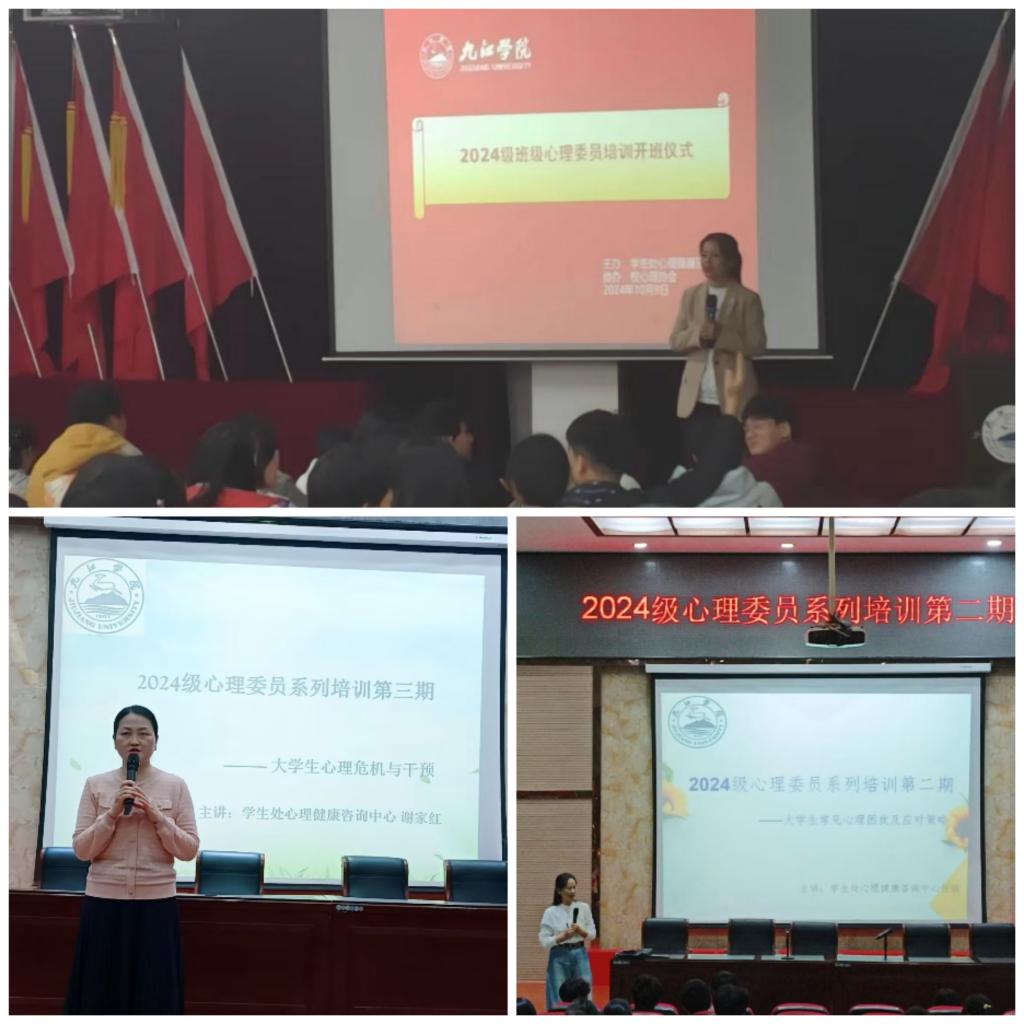 为贯彻落实有关工作要求,进一步提升我校班级心理委员在心理健康教育工作中的积极作用,充分发挥“前哨站”作用,锻造出一支“懂心理、善沟通、能作为”的朋辈心理骨干队伍,近日,九江学院2024级班级心理委员系列培训会举行,来自全校2024级各班级300余名心理委员参加培训。