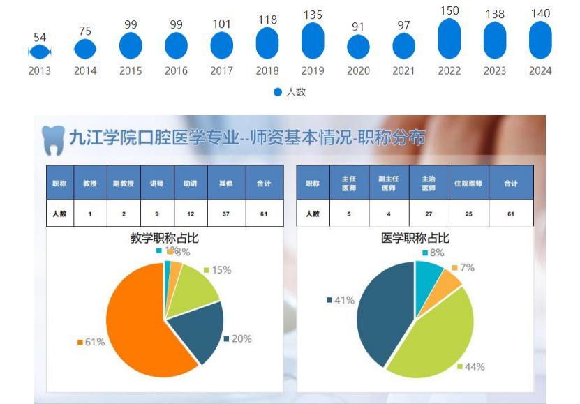 口腔医学院于 2023 年 12 月经九江学院批准成立,其前身为 2002 年开始招生的口腔医学专业专科,2013 年升为本科 招生。