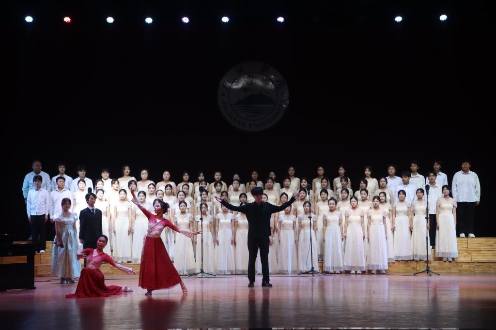 文学院的经典抗战歌曲《长城谣》,带领观众回溯那段波澜壮阔的历史岁月;教育学院深情唱响《我和我的祖国》,用歌声诉说着对祖国的无限热爱;体育学院合唱歌曲《祖国不会忘记》,道出了为祖国默默奉献者的心声;建筑工程与规划学院的青春励志歌曲《稻香》,积极传递坚强和希望;护理学院的抒情歌曲《大海啊故乡》,传递着对故乡和祖国深深的眷恋;机械与智能制造学院的经典军旅歌曲《中国军魂》,展现出军人气势磅礴的豪迈气概。