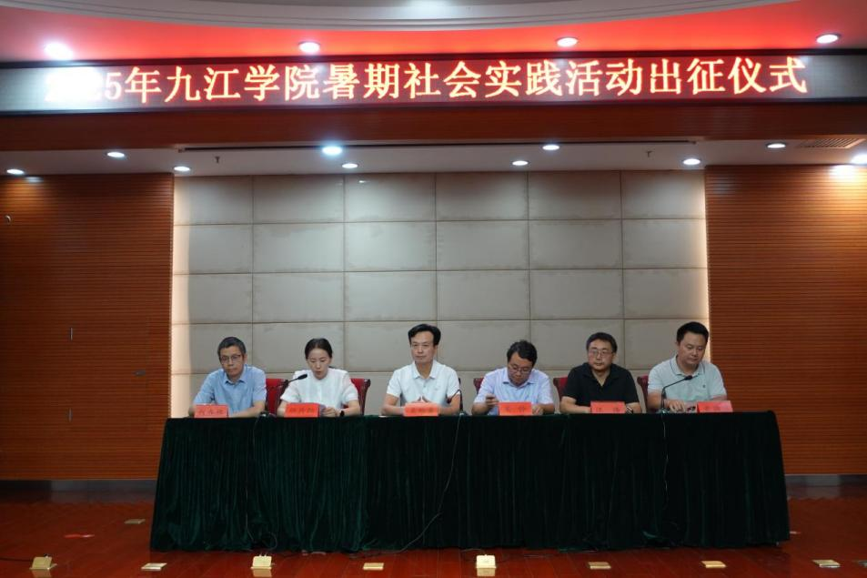 为深入学习贯彻习近平新时代中国特色社会主义思想,引导青年学子在社会实践中厚植家国情怀、锤炼过硬本领,6月18日下午,九江学院2025年暑期社会实践活动出征仪式在逸夫图书馆报告厅举行。校党委委员、副校长吴维勇出席会议并讲话。党委宣传部、教务处、学生工作处、校团委等相关部门负责人;各二级学院思政科科长及社会实践队师生代表参加会议。