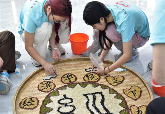 6月26日,实践队走进流芳乡开启非遗传承实践活动。上午,队员们运用各类豆类原料进行豆画拼接创作,将经济学院院徽、美好愿景等元素融入作品,感受民间智慧与传统技艺的创新融合。下午,队员们走进当地非遗工坊,亲身体验豆腐制作全过程,从挑选黄豆到石磨磨浆再到柴火灶煮浆点卤、压制成型,在豆香四溢中领悟古法技艺的匠心传承,探索非遗文化赋能乡村振兴的新路径。