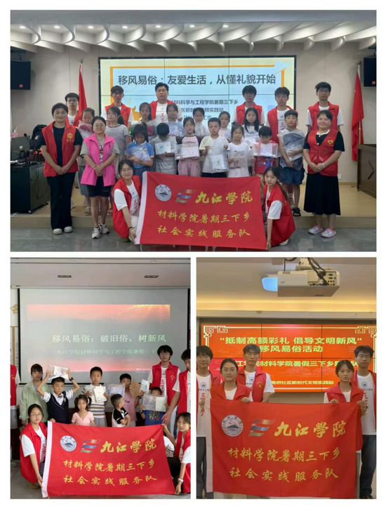 从安全课堂到书香长廊,从红色足迹到文明宣讲,九江学院材料科学与工程学院参与暑期“三下乡”的志愿者们,用青春与智慧为青少年打造出一个丰富多彩的“七彩童话镇”。这场“七彩假期”关爱项目志愿服务,不仅是一次服务社会的实践,更是一堂生动的成长之课。志愿者们在奉献中收获,在实践中成长,他们将带着这份温暖与力量,继续驶向更广阔的天地,书写更多精彩的青春故事。