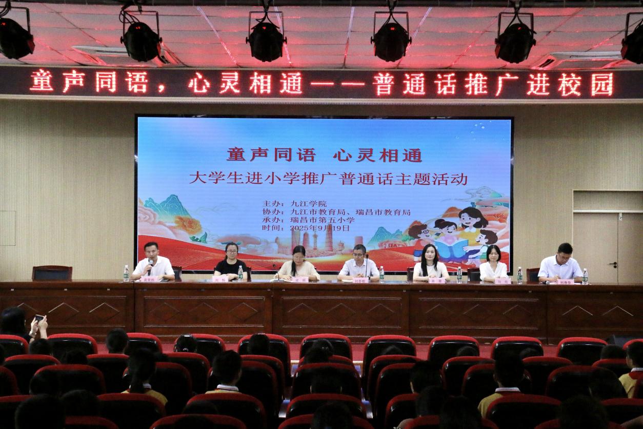 在第28届全国推广普通话宣传周期间,国家语言文字推广基地(九江学院)积极开展线上线下多元推普活动。9月19日,推普课堂走进了瑞昌市第五小学,与九江市教育局、瑞昌市教育局联合举办“童声同语,心灵相通”大学生进小学推广普通话主题活动,为同学们带来了一场互动式的语言文化体验。
