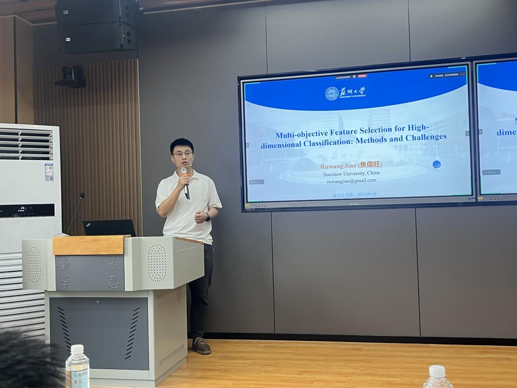 9月20日上午,苏州大学焦儒旺教授应邀访问我校计算机与大数据科学学院,并在电子信息实验楼602学术研讨室做了题为《Muti-objective Feature Selection for High-dimensional Classification:Methods and Challenges》的学术报告。报告会由九江市电子学会、江西省计算机学会智能计算专委会和我校计算机与大数据科学学院联合主办。