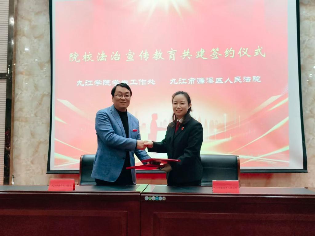 此次九江学院与九江市濂溪区人民法院开展共建,是九江学院贯彻落实习近平法治思想的重要实践,也是推动法治教育实践创新的积极尝试。学生工作处负责人吴铃表示,学校将全力做好各项服务保障工作,为后续开展法治讲座、模拟法庭等实践活动提供有力支持,确保共建项目顺利、高效推进。九江市濂溪区人民法院副院长罗曦表示,青少年是国家法治建设的未来力量,法院始终高度重视校园法治教育工作。在此次共建合作中,法院将充分发挥自身在案例资源方面的优势,把生硬的法律条文转化为生动的案例,助力学生提升法律素养,成长为知法、懂法、守法、用法的新时代青年。