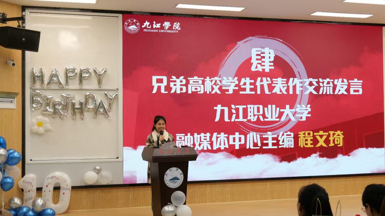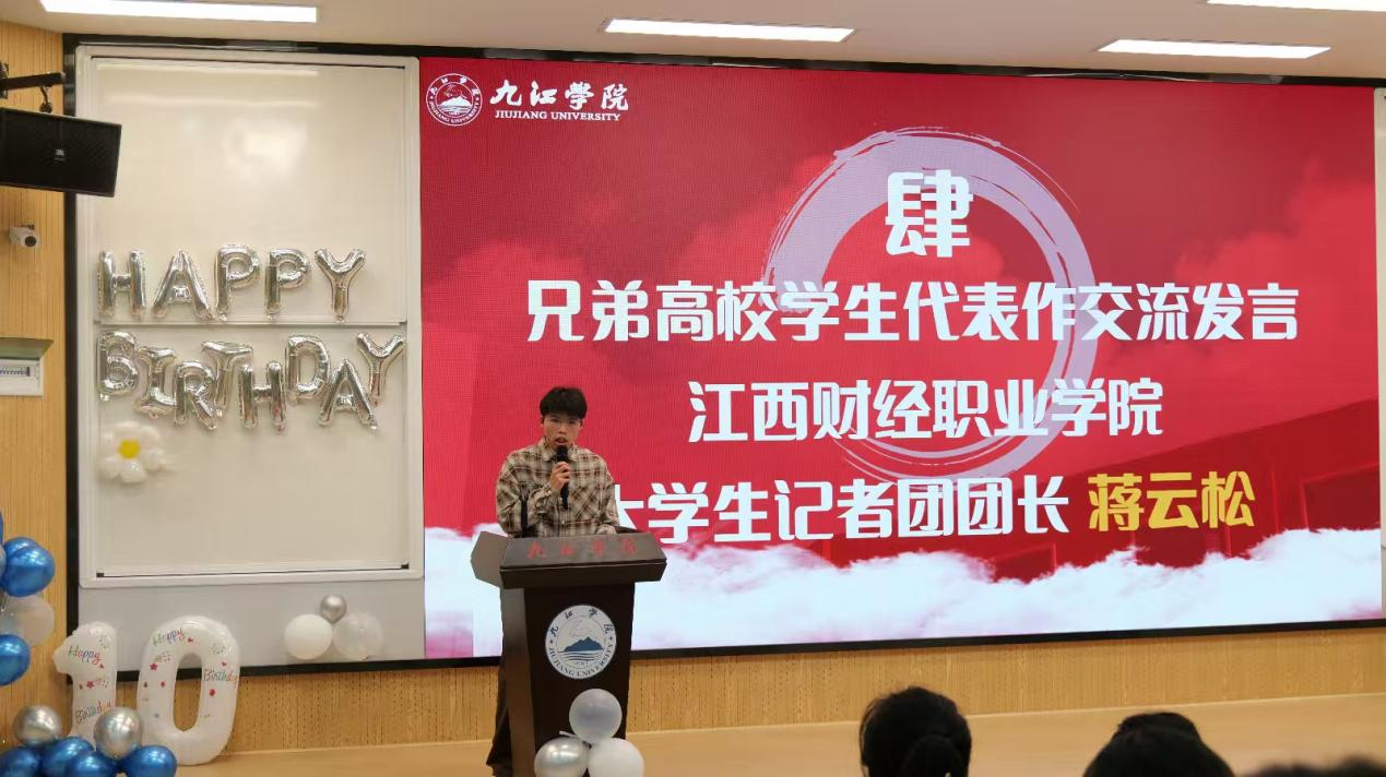 来自三所兄弟院校的学生代表相继发言,表达了对记者职业精神的坚守与对校园新闻宣传工作的担当,并期待与九江学院进一步加强交流、相互学习、共同成长,在追求真实、传递美好的道路上并肩前行。