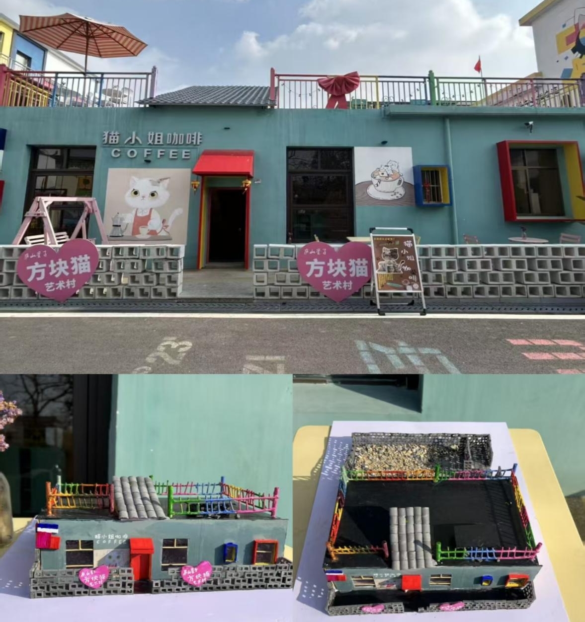 从建筑模型的精准复刻到微景观的创意营造,九江学院师生以绣花功夫雕琢方块猫艺术街区。他们用产教融合的生动实践,串联起"爱专业、爱校园、爱国家"的赤子情怀,打造出校地协同振兴的典范。