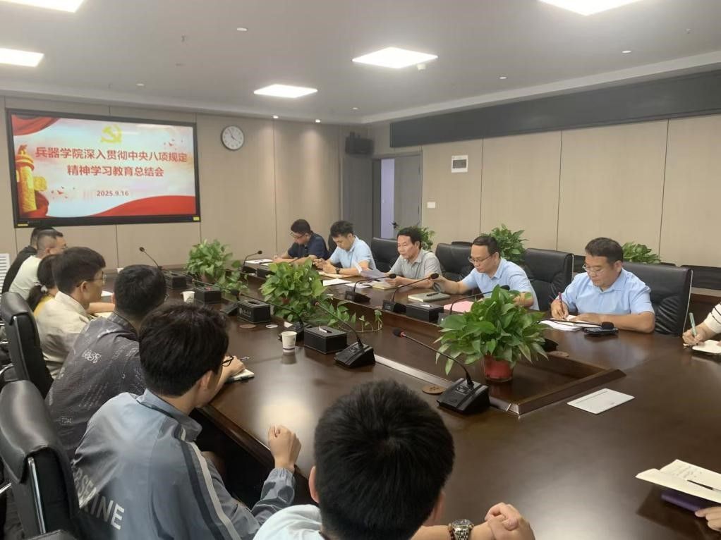 9月16日下午,兵器学院召开深入贯彻中央八项规定精神学习教育总结会,学院党委书记蔡长龙作总结讲话,院党委委员、各支部书记参加会议。院党委副书记、纪委书记梁伟樯主持会议。