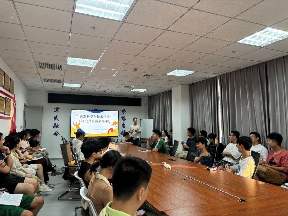 2024年9月2日晚,兵器科学与技术学院研究生会在学院会议室举行换届暨部门拓展大会。根据兵器学院研究生会业务发展需要,本次新增心理部、宣传部和组织部三个部门。经过投票,选举出第三届主席团成员和各部负责人。现将名单公示如下: