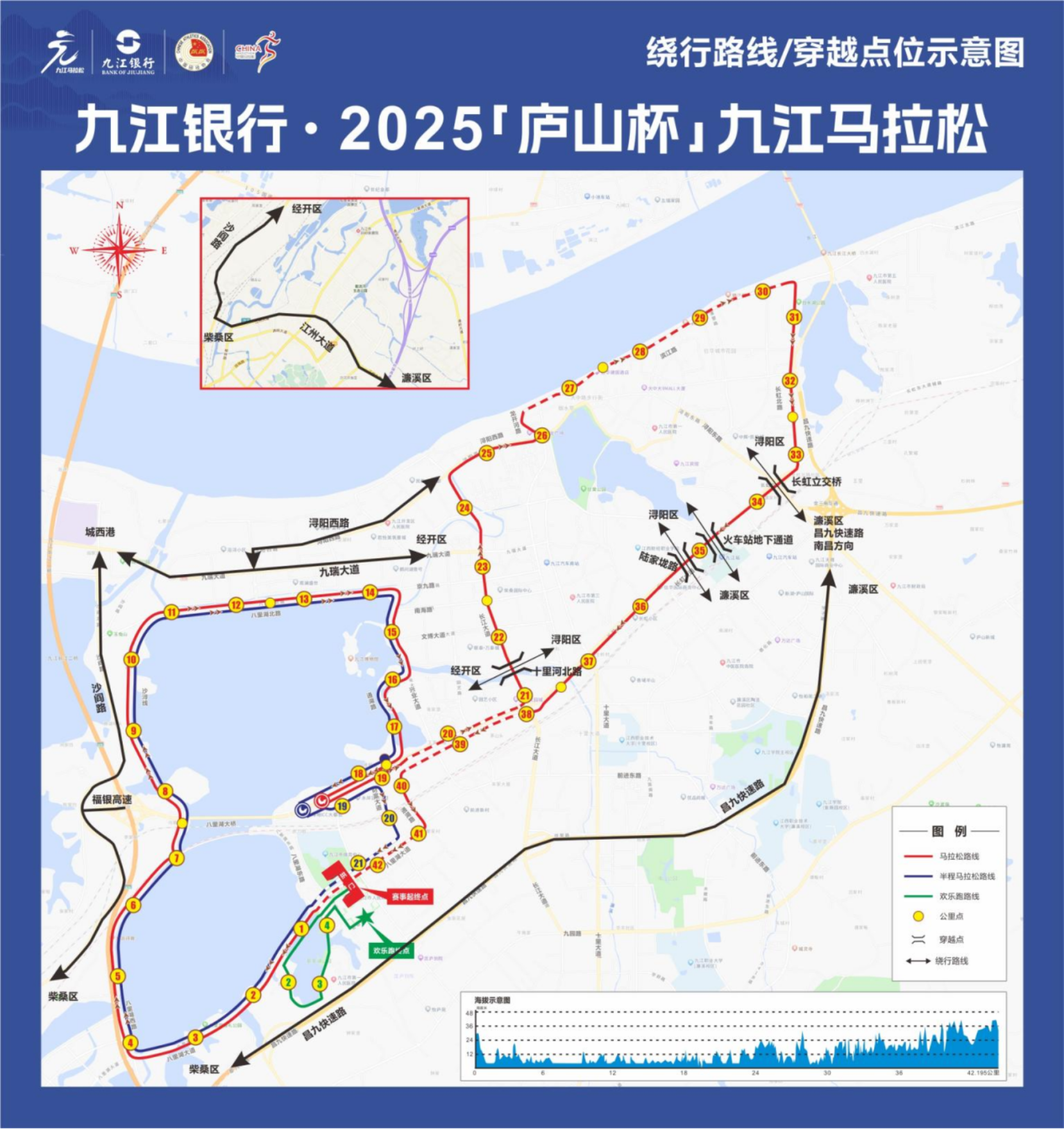 九江银行·2025‘庐山杯’九江马拉松交通管制示意图